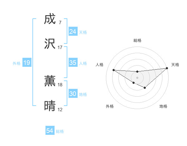 成沢 薫晴さんの天格は24画の5点!