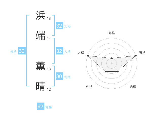 浜端 薫晴さんを姓名の画数から五運を鑑定