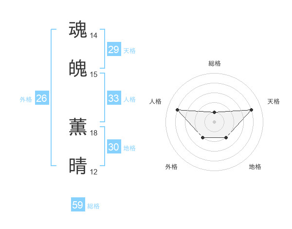 魂魄 薫晴さんの総格は59画の1点!