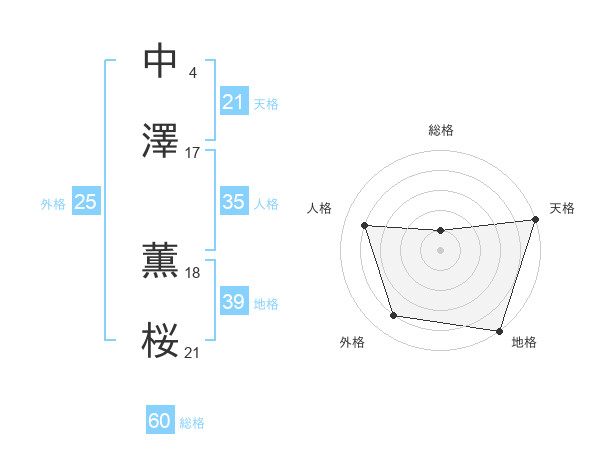 中澤 薫桜さんの総格は60画の1点!