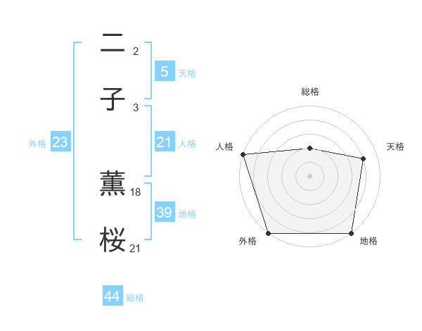 二子 薫桜さんの外格は23画の5点!