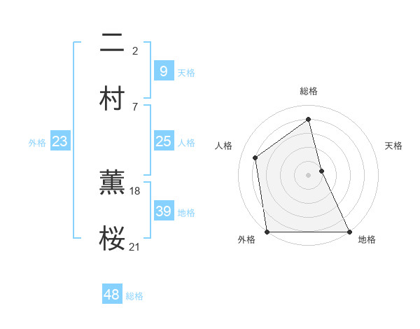 二村 薫桜さんの外格は23画の5点!
