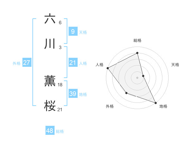 六川 薫桜さんの総格は48画の4点!