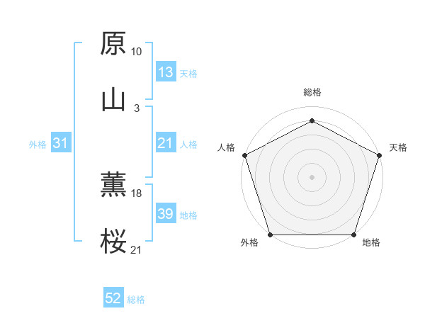 原山 薫桜さんを姓名の画数から五運を鑑定