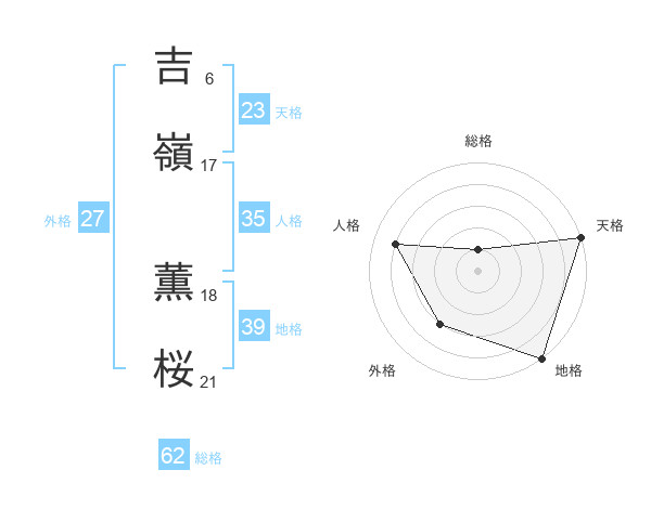 吉嶺 薫桜さんを姓名の画数から五運を鑑定