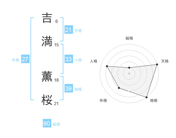 吉満 薫桜さんを姓名の画数から五運を鑑定