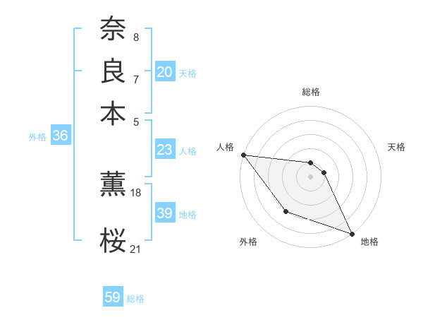 奈良本 薫桜さんの総格は59画の1点!