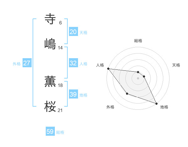 寺嶋 薫桜さんの総格は59画の1点!