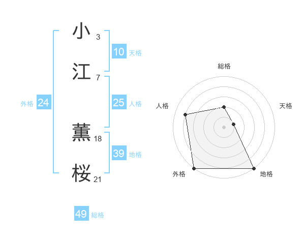小江 薫桜さんを姓名の画数から五運を鑑定