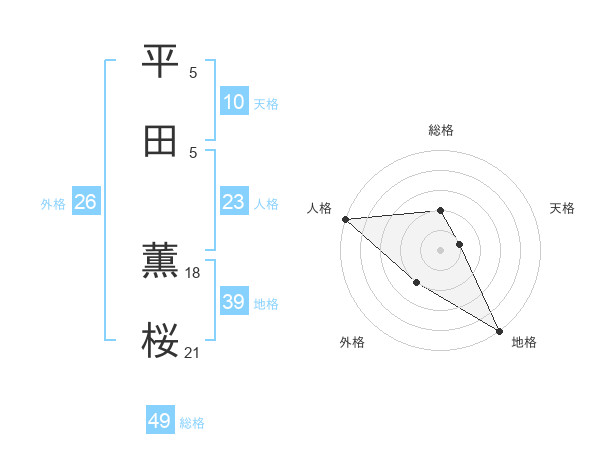 平田 薫桜さんを姓名の画数から五運を鑑定