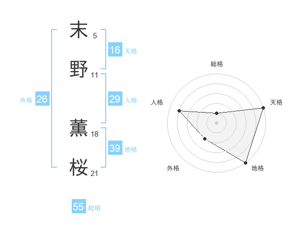 末野 薫桜さんを姓名の画数から五運を鑑定