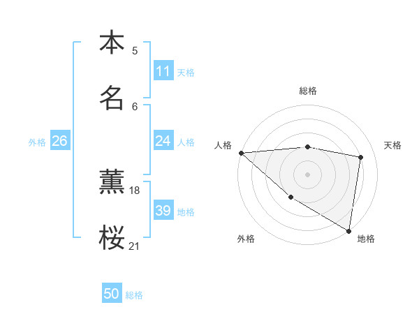 本名 薫桜さんを姓名の画数から五運を鑑定