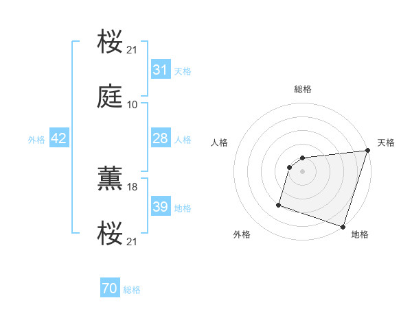 桜庭 薫桜さんを姓名の画数から五運を鑑定
