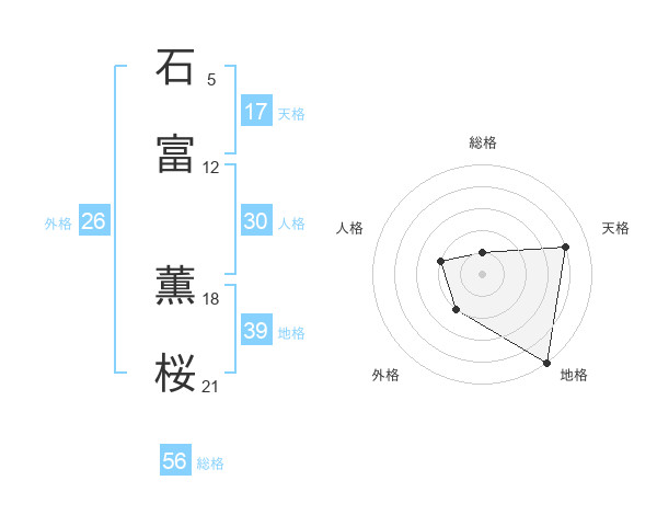 石富 薫桜さんを姓名の画数から五運を鑑定