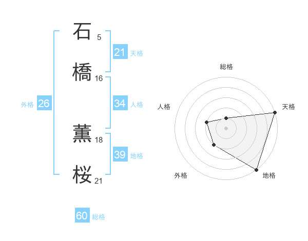 石橋 薫桜さんの総格は60画の1点!