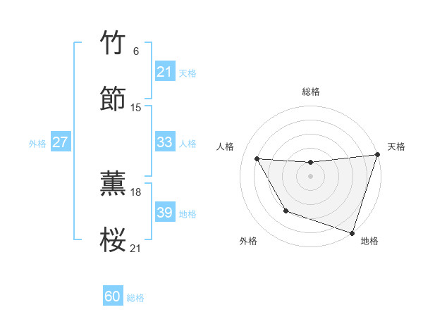 竹節 薫桜さんの外格は27画の3点!