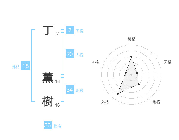 丁 薫樹さんの総格は36画の3点!