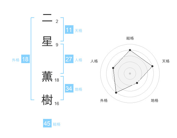 二星 薫樹さんの総格は45画の4点!