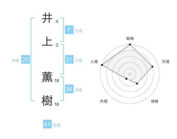井上 薫樹さんの総格は41画の5点!
