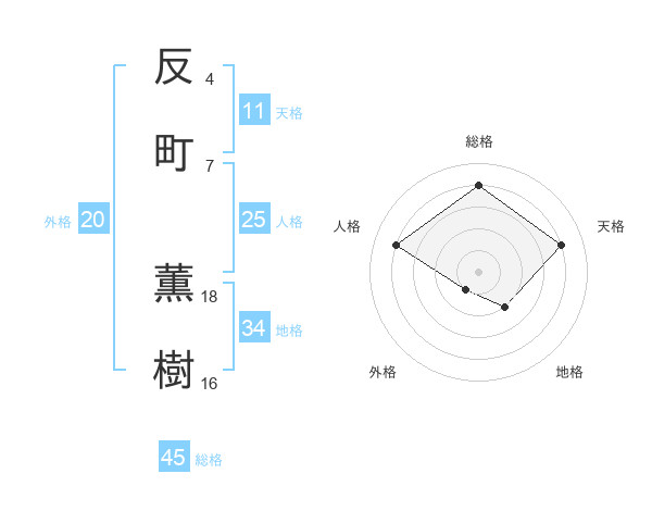 反町 薫樹さんを姓名の画数から五運を鑑定