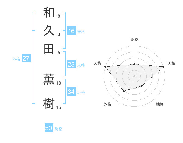 和久田 薫樹さんを姓名の画数から五運を鑑定