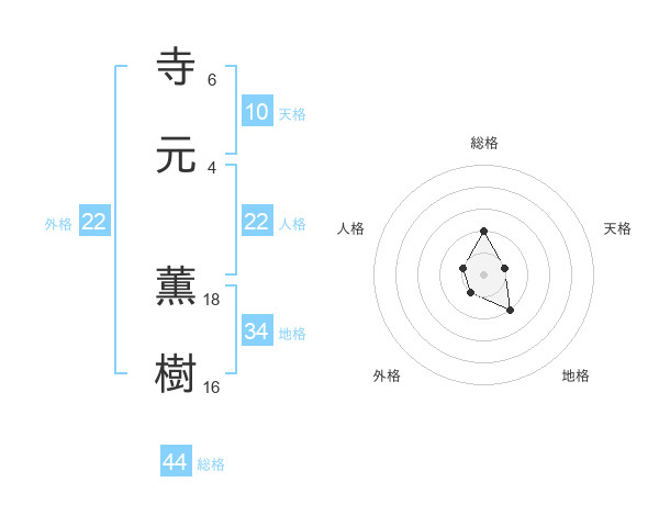 寺元 薫樹さんを姓名の画数から五運を鑑定