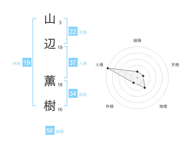山辺 薫樹さんの総格は56画の1点!