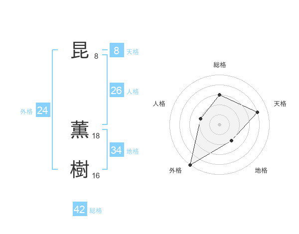 昆 薫樹さんの総格は42画の3点!
