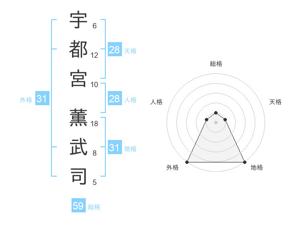 宇都宮 薫武司さんを姓名の画数から五運を鑑定
