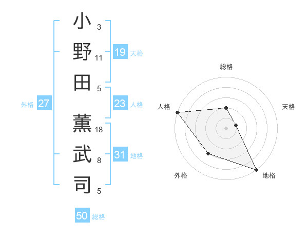 小野田 薫武司さんを姓名の画数から五運を鑑定