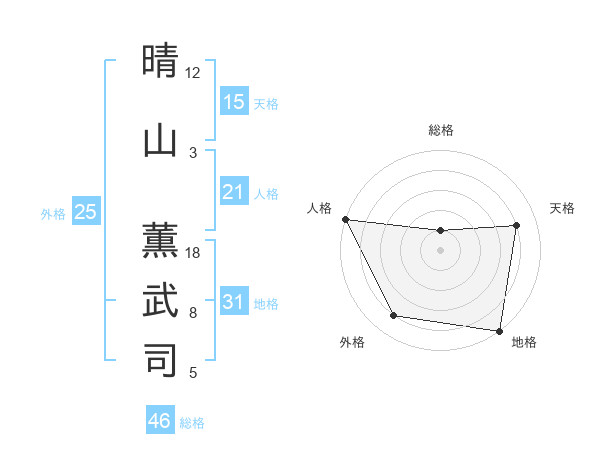 晴山 薫武司さんを姓名の画数から五運を鑑定
