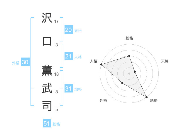 沢口 薫武司さんを姓名の画数から五運を鑑定
