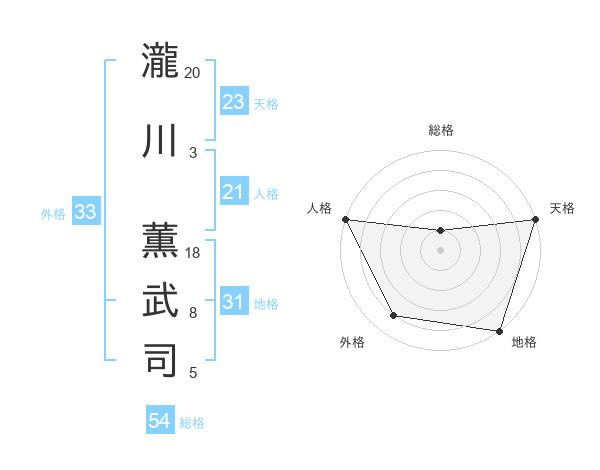 瀧川 薫武司さんの天格は23画の5点