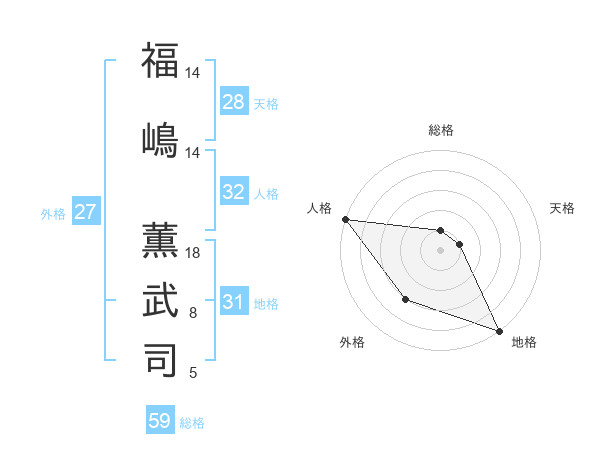 福嶋 薫武司さんの地格は31画の5点!
