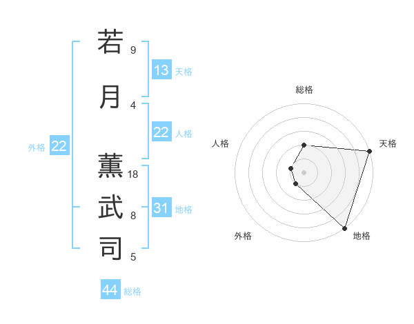 若月 薫武司さんを姓名の画数から五運を鑑定