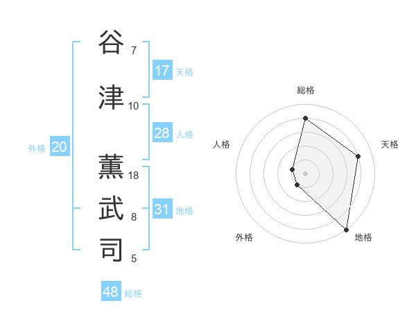 谷津 薫武司さんを姓名の画数から五運を鑑定
