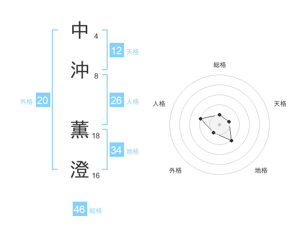 中沖 薫澄さんを姓名の画数から五運を鑑定