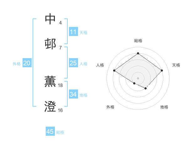 中邨 薫澄さんの人格は25画の4点!