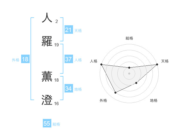 人羅 薫澄さんを姓名の画数から五運を鑑定