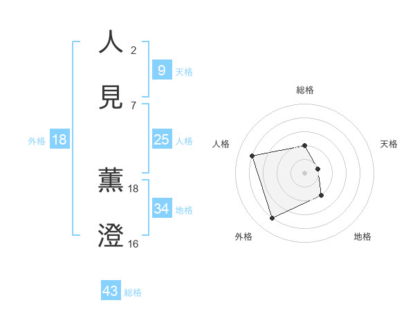 人見 薫澄さんの総格は43画の2点!