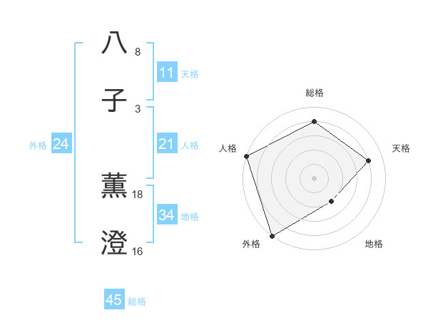 八子 薫澄さんの総格は45画の4点!