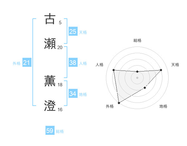 古瀬 薫澄さんの総格は59画の1点!