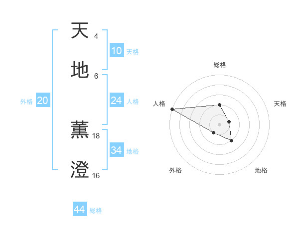 天地 薫澄さんの総格は44画の2点!