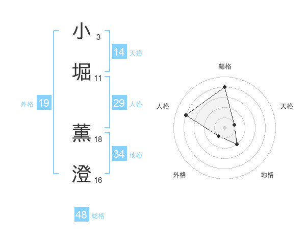 小堀 薫澄さんの天格は14画の1点!