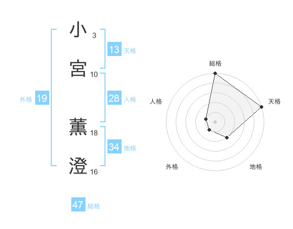 小宮 薫澄さんを姓名の画数から五運を鑑定