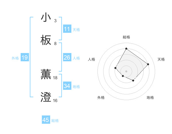 小板 薫澄さんの総格は45画の4点!