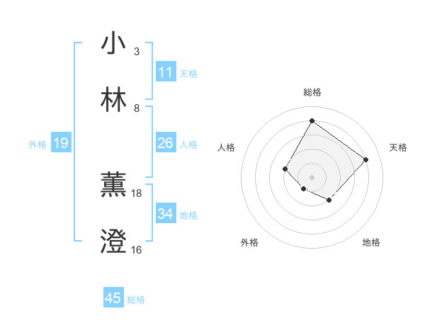小林 薫澄さんの総格は45画の4点!