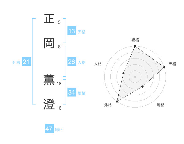 正岡 薫澄さんを姓名の画数から五運を鑑定