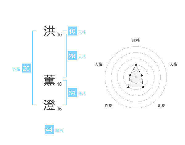 洪 薫澄さんの総格は44画の2点!