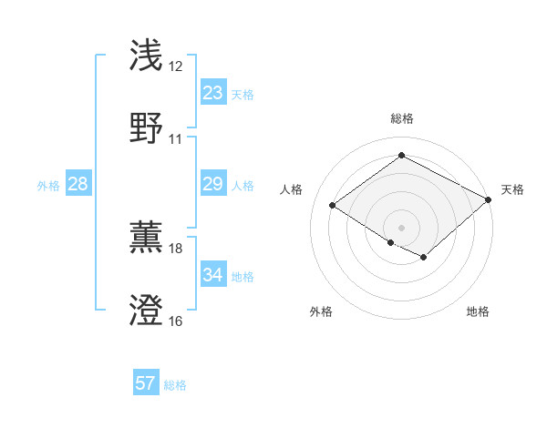 浅野 薫澄さんの天格は23画の5点!